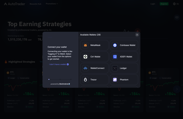 Web3 Wallet Login is a new feature on AT.io that allows users to register and log in using a decentralized wallet (such as MetaMask, WalletConnect, etc.), without the need for an email address or phone number. More importantly, this enables users to deposit funds directly from your wallet.