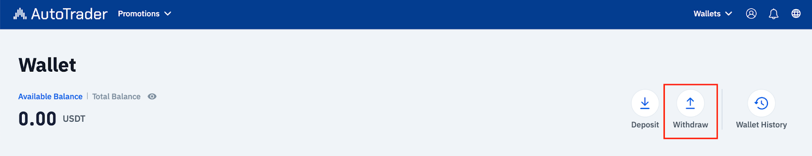 1. Untuk memulai transaksi penarikan, buka Dompet Anda dan pilih aset yang ingin Anda tarik.